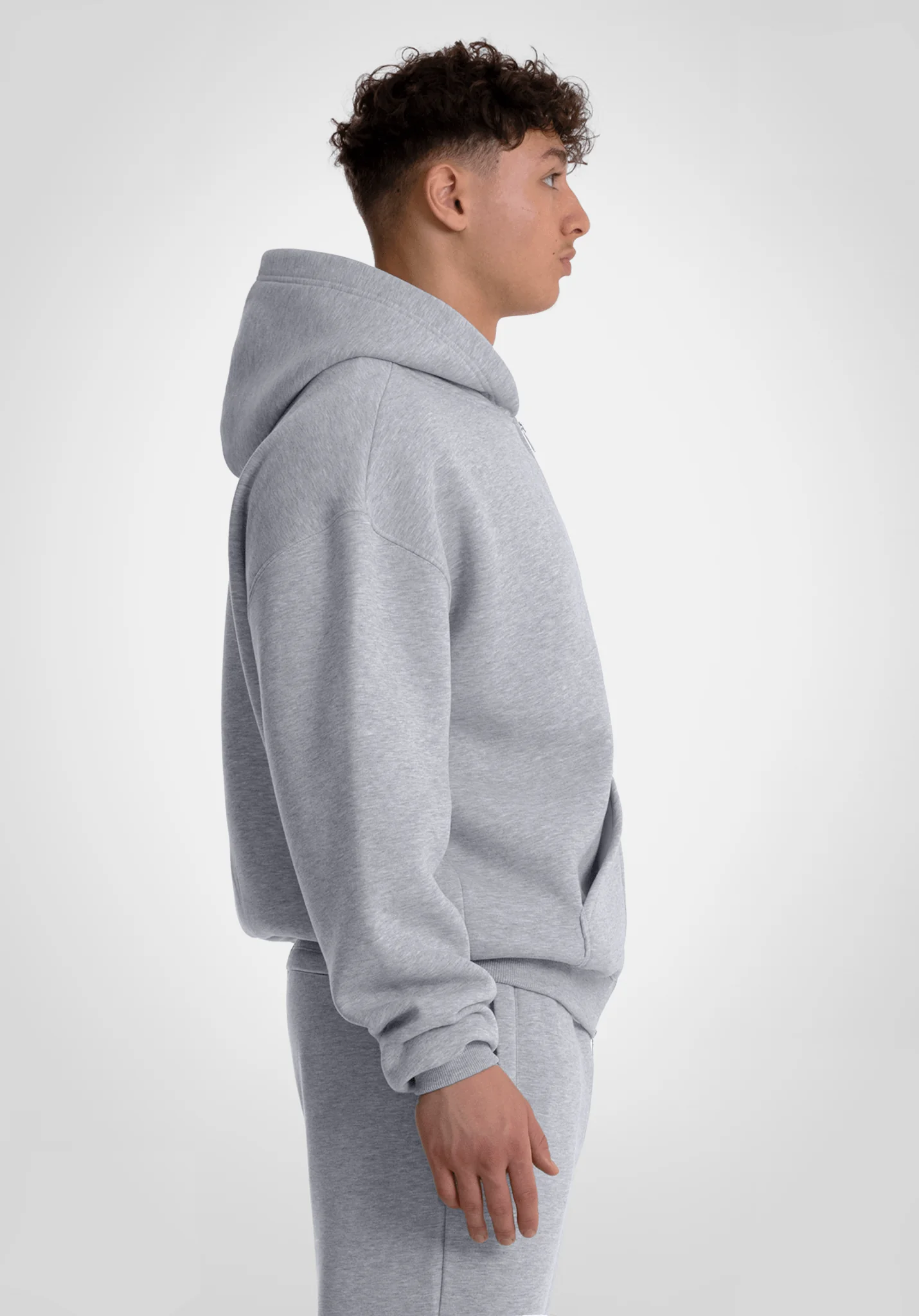 Full Zip Hoodie – Melange Grey | 90s Boxy Fit